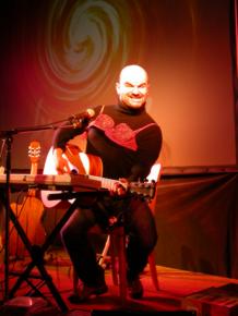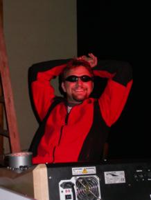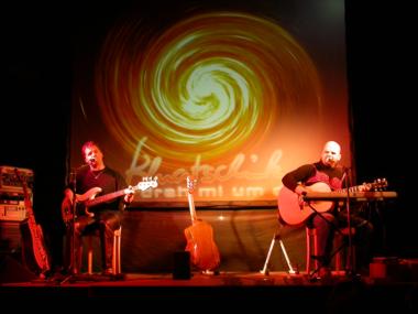 | Tonis und Peters Schatten auf der Leinwand von hinter der Bühne aus gesehen...