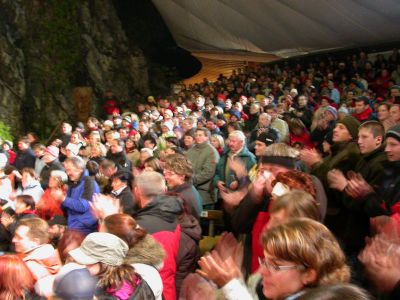 Die Zuschauer waren trotz der Kälte (Schneefall im Juni) begeistert von der Kaspar-Aufführung