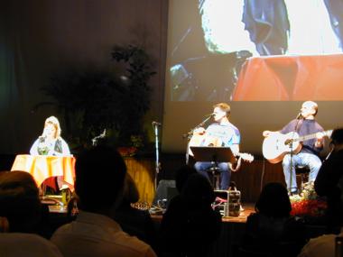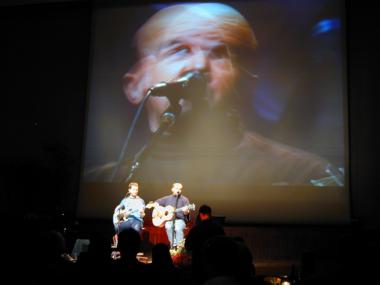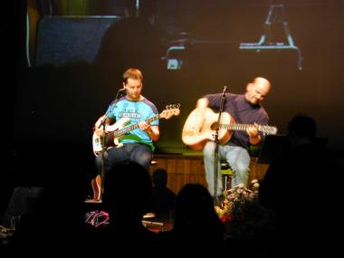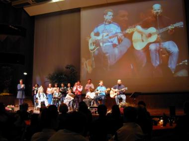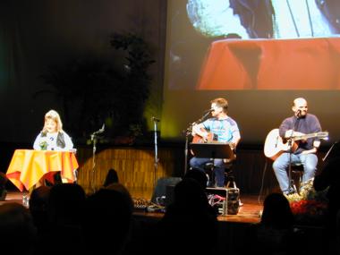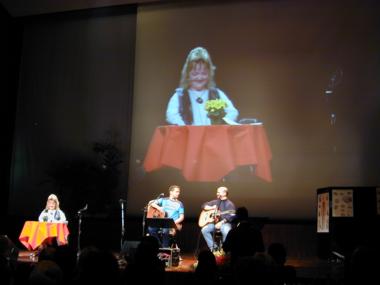 | Marianne Hengl liest aus ihrem Buch 'Wirbelwind' vor, Peter und Toni 'Bluatschink' singen dazu