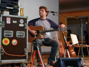 | Roadie Rissi stimmt die Gitarren nach