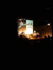 | Tonis und Peters Schatten auf der Leinwand von hinter der Bühne aus gesehen...